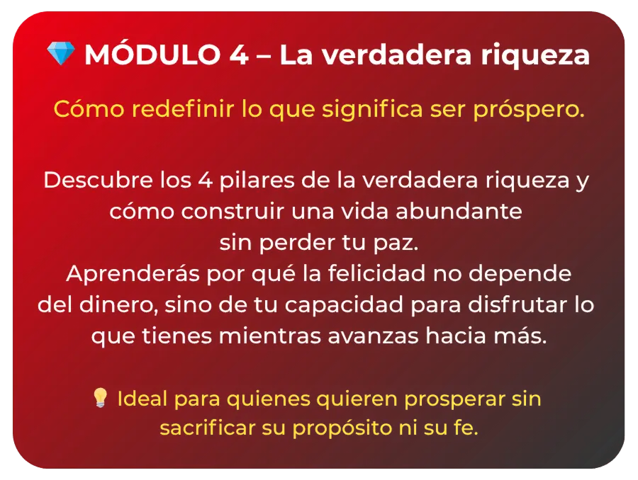 ⚡️ Módulo 4: La verdadera riqueza – Descubre los 4 pilares de la prosperidad con propósito.