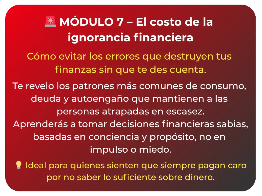 ⚡️ Módulo 7: El costo de la ignorancia financiera – Libérate de los errores que frenan tu crecimiento.