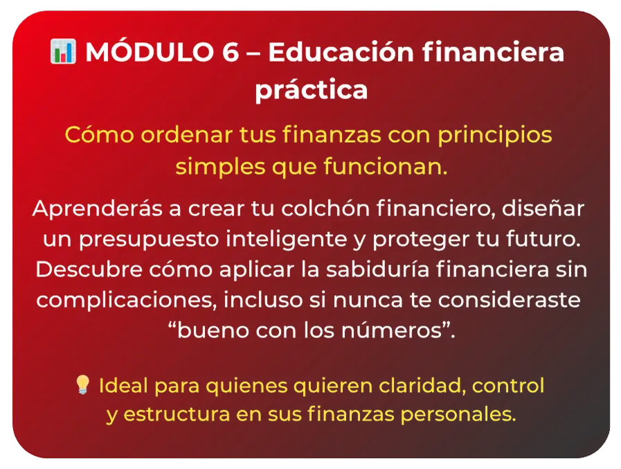 ⚡️ Módulo 6: Educación financiera práctica – Ordena tus finanzas y construye estabilidad.