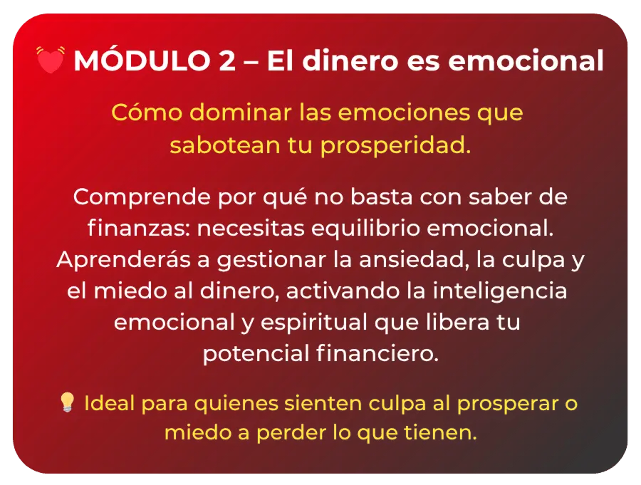 ⚡ Módulo 2: El dinero es emocional – Domina las emociones que sabotean tu prosperidad.
