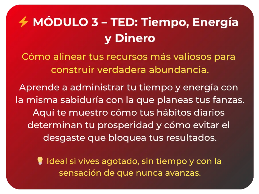 ⚡️ Módulo 3: Tiempo, energía y dinero – Aprende a alinear tus recursos más valiosos para generar abundancia.