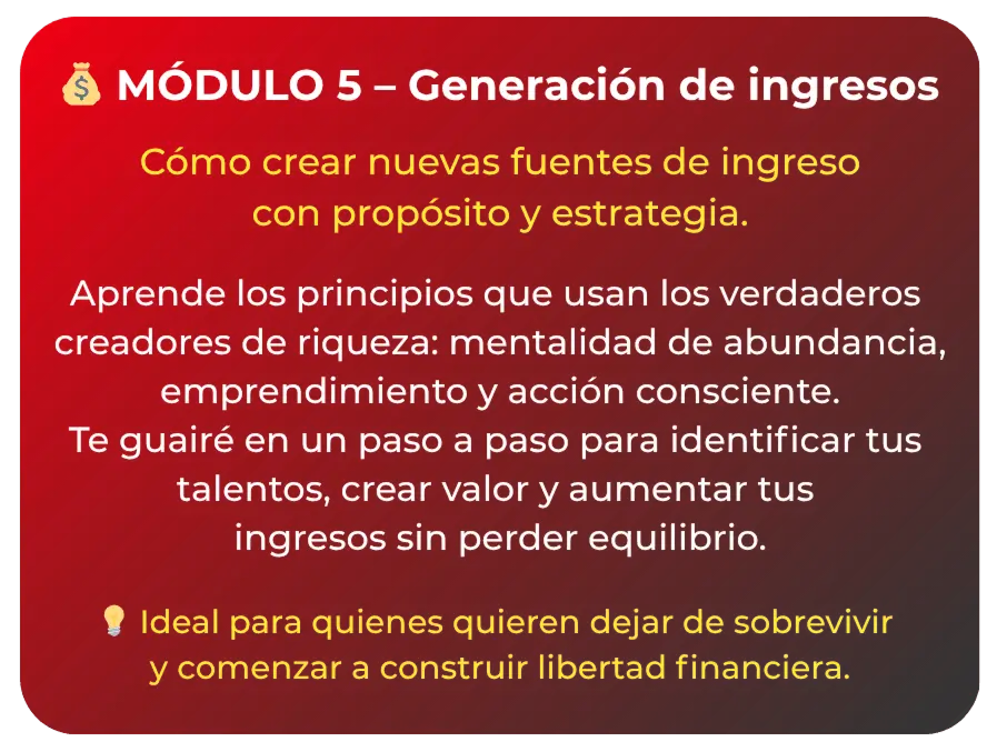 ⚡️ Módulo 5: Generación de ingresos – Crea fuentes de ingreso sostenibles y con sentido.